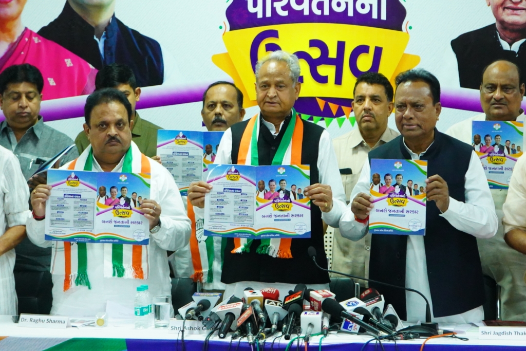 વિધાનસભા – ૨૦૨૨ની ચૂંટણી માટે કોંગ્રેસ પક્ષ ગુજરાતના નાગરિકોની આશા અને અપેક્ષાઓને ધ્યાનમાં લઈ જન ઘોષણા પત્ર ચૂંટણી ઢંઢેરાને રાજસ્થાનનાં માનનીય મુખ્યમંત્રીશ્રી અશોક ગહલોતજી, રાજસ્થાનના પૂર્વ આરોગ્ય મંત્રી અને ગુજરાતના પ્રભારી ડૉ. રઘુ શર્મા, ગુજરાત પ્રદેશ કોંગ્રેસ સમિતિના પ્રમુખશ્રી જગદીશ ઠાકોર, વિધાનસભા કોંગ્રેસ પક્ષના નેતાશ્રી સુખરામ રાઠવા, ગુજરાત પ્રદેશ કોંગ્રેસ સમિતિના પૂર્વ પ્રમુખશ્રી ભરતસિંહ સોલંકી, શ્રી અર્જુનભાઈ મોઢવાડીયા, શ્રી સિધ્ધાર્થભાઈ પટેલ, શ્રી અમિત ચાવડા, રાષ્ટ્રીય પ્રવક્તા અને રાજ્યસભાના સાંસદશ્રી શક્તિસિંહ ગોહિલ, એ.આઈ.સી.સી.ના પૂર્વ મહામંત્રીશ્રી અને મેનીફેસ્ટો કમિટિના ચેરમેનશ્રી દિપક બાબરીઆ સહિતના મહાનુભાવોએ આજ રોજ ગુજરાતના નાગરિકો માટે જન ઘોષણા પત્ર ચૂંટણી ઢંઢેરા પ્રકાશિત કરવામાં આવ્યો હતો.