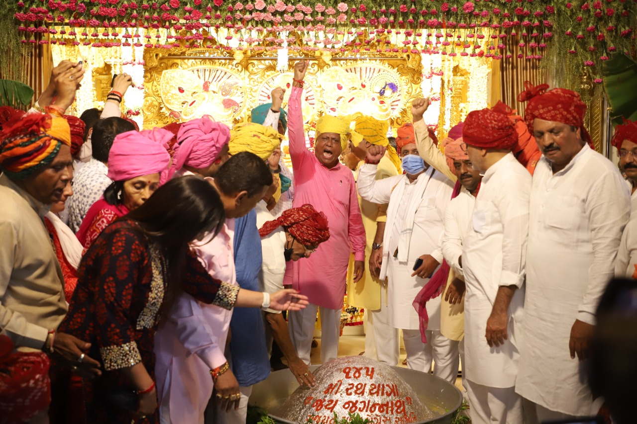 અમદાવાદ શહેર ખાતે આવેલ ગુજરાતના સુપ્રસિધ્ધ ભગવાન શ્રી જગન્નાથજીની ઐતિહાસીક ૧૪૫મી રથયાત્રાની પૂર્વ સંધ્યાએ ઢોલ-નગારા અને પરંપરાગત સાફા સાથે પદયાત્રા કરી ભગવાન જગન્નાથજીને 145 કિલોનો લાડુ પ્રસાદ અર્પણ કરી એઆઇસીસીનાં મહામંત્રી અને ગુજરાત પ્રદેશ કોંગ્રેસ સમિતિના સંગઠન પ્રભારીશ્રી ડૉ. રઘુ શર્માજી, ગુજરાત પ્રદેશ કોંગ્રેસ સમિતિના પ્રમુખ શ્રી જગદીશ ઠાકોર , વિધાનસભા કોંગ્રેસ પક્ષનાં નેતાશ્રી સુખરામભાઈ રાઠવા તેમજ વરિષ્ઠ આગેવાનોએ ભગવાન શ્રી જગન્નાથજીની આરતી તથા દર્શન કર્યા અને મહંત શ્રી દિલીપદાસજીના આશીર્વાદ પ્રાપ્ત કર્યા અને ત્યારબાદ રથની પૂજા વિધી કરીને ભગવાન જગન્નાથજીનાં ચરણે શીશ ઝુકાવીને રાજ્યમાં તમામ નાગરિકોને સુખ, શાંતિ અને સમૃદ્ધિ માટે પ્રાર્થના કરી આશીર્વાદ માંગ્યા હતા.